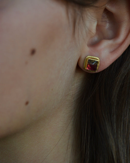 Watermelon Tourmaline Checkerboard Studs | Handcrafted 18k Gold