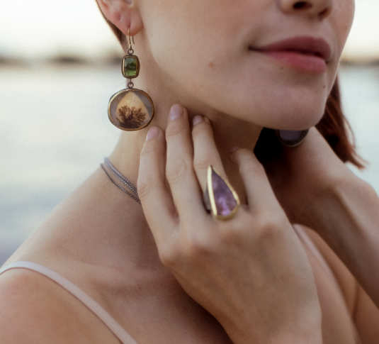 Black Dendritic Agate Heart Pendant | Handcrafted 18k Gold