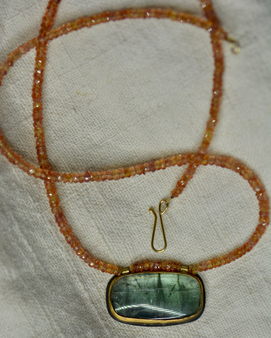 Tourmaline & Sapphire Beaded Necklace | Handcrafted Silver, 22k & 18k Gold