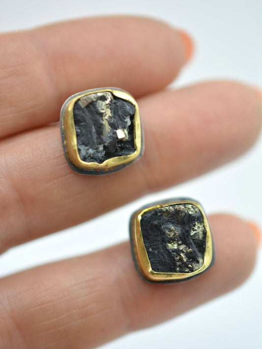 Watermelon Tourmaline Checkerboard Studs | Handcrafted 18k Gold