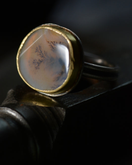 Earthy Dendritic Agate Ring | Handcrafted 18k Gold & Sterling Silver