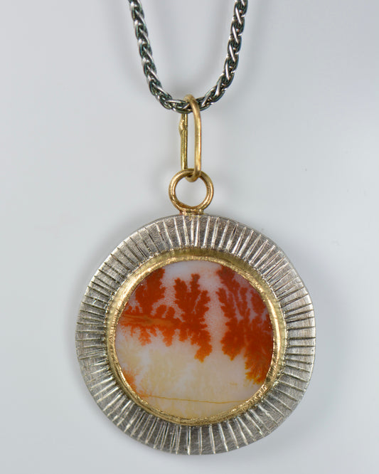 Dendritic Agate Pendant | Fire Red in 18k Gold & Oxidized Sterling Silver