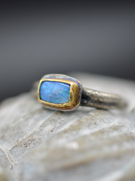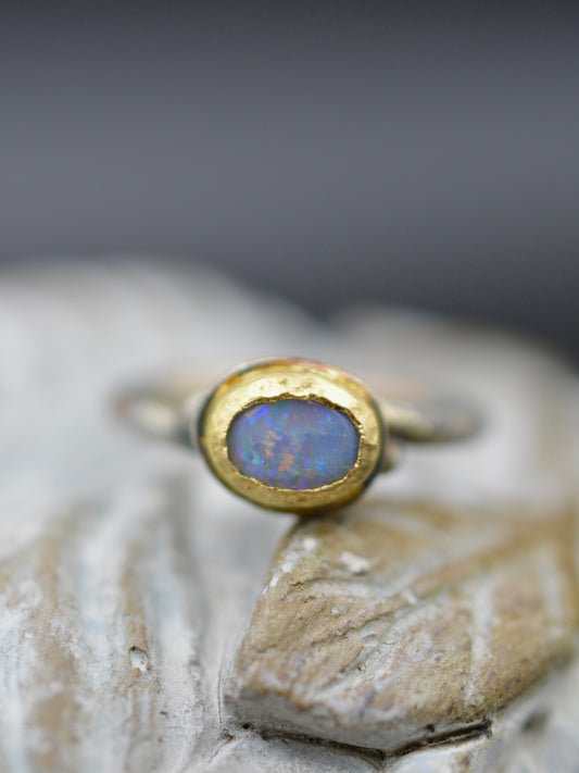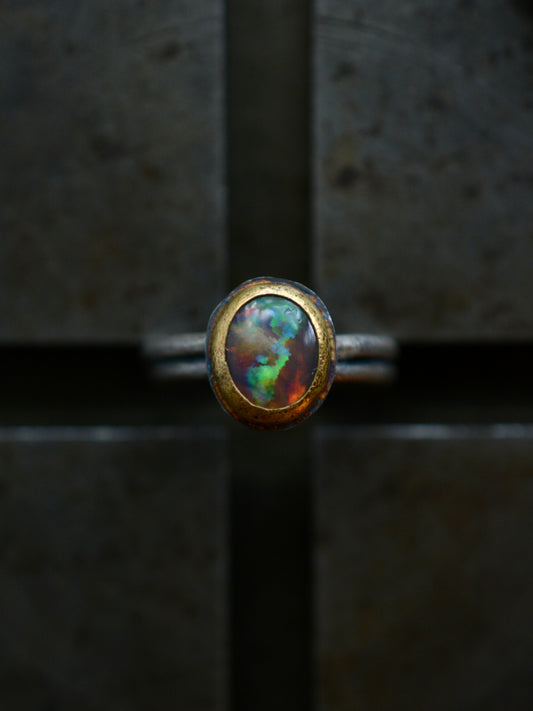 Earthy Dendritic Agate Ring | Handcrafted 18k Gold & Sterling Silver
