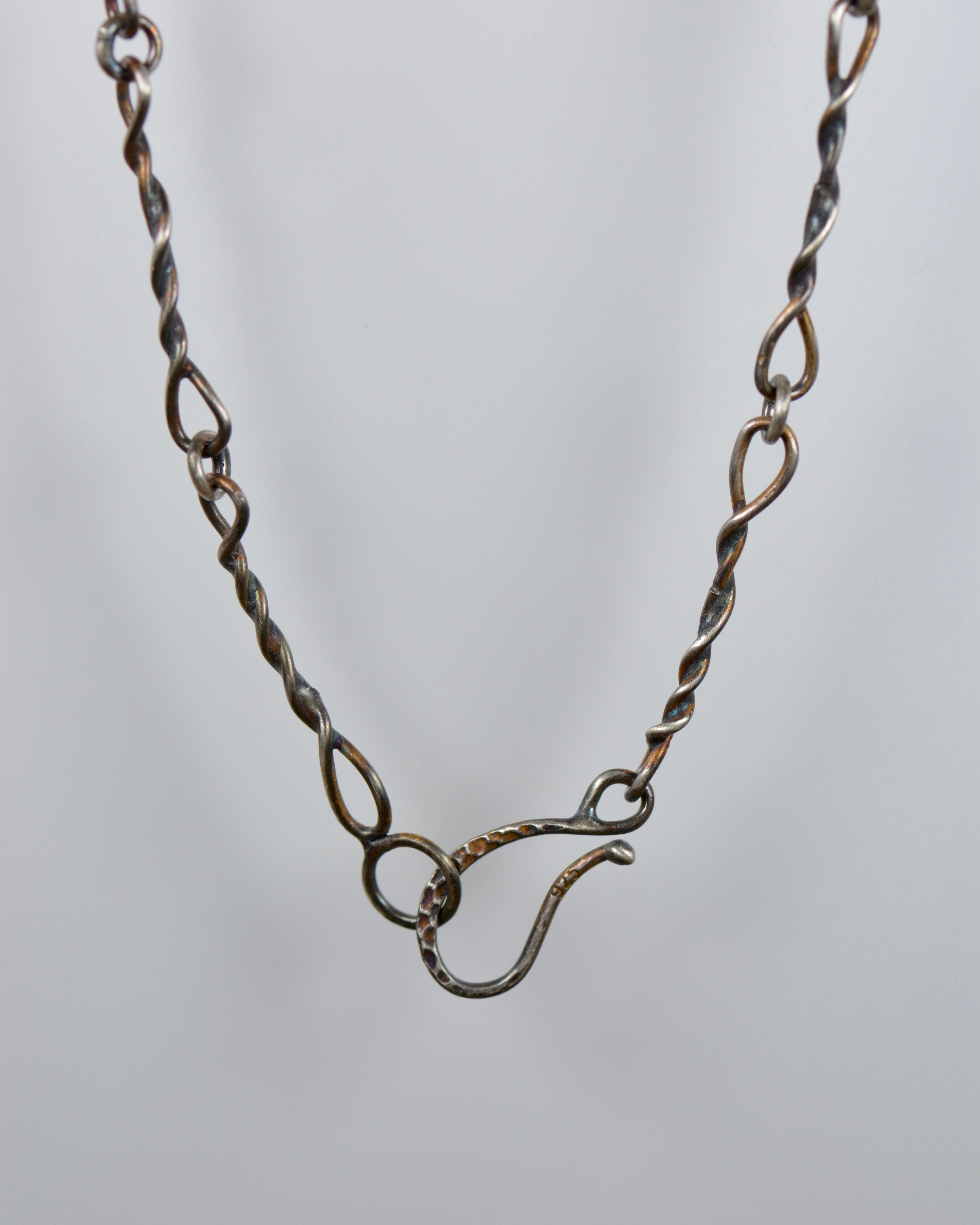 This intricately feathered, grey-brown dendritic agate necklace is completely one-of-a-kind. I love the subtle colours and detailed dendritic patterns of this stone, and the way it appears to float elegantly in its setting. Its large size will make a bold statement while remaining understated in its earthy colour palette. Featuring an 18k gold prong setting on an adjustable 20" hand-forged twist style sterling silver chain, all lovingly handcrafted with an organic feel.
